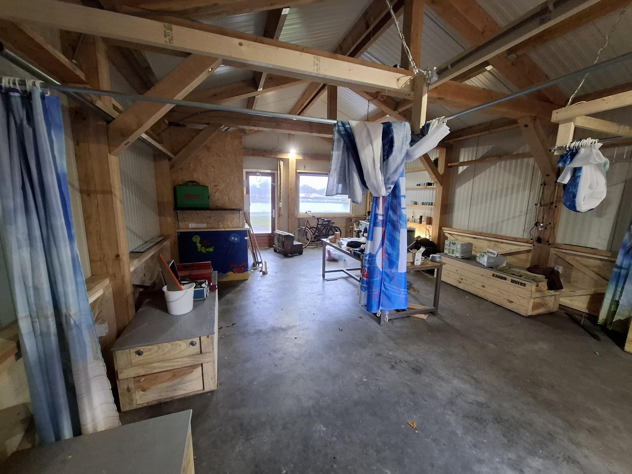 Aan de achterzijde van het gebouw vind je de hoofdingang. Daar zitten ook de kleedkamers, opbouwtafels en straks ook de buitendouche en het droogrek (die komen er binnenkort bij). Dit is de plek waar je je duikspullen klaar kunt maken, omkleden en je spullen weer netjes op kunt bergen na afloop.